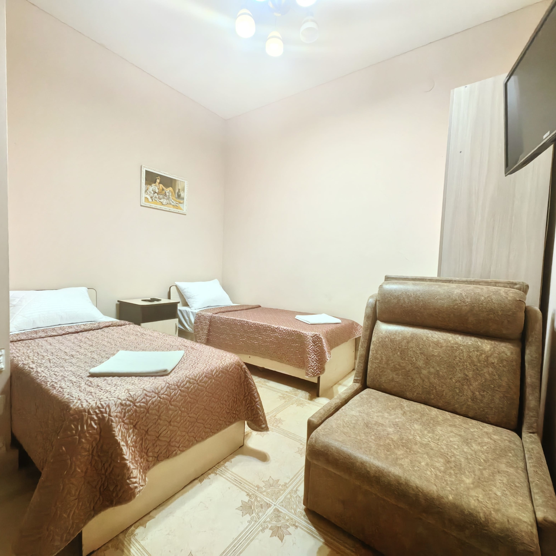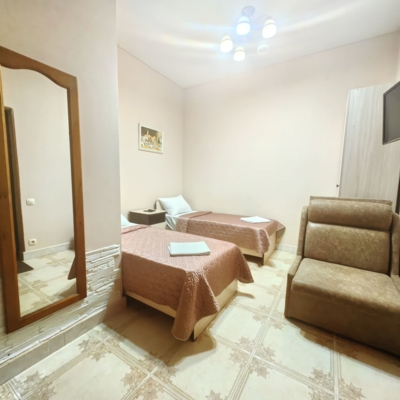 • При бронировании трёхместного номера, предоставляется размещение категории TWIN+ EXB (стандартный номер с двумя раздельными кроватями + дополнительное спальное место( возможно еврораскладушка))