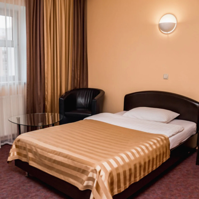 Гостиница «Спутник» расположена недалеко от центра города и ЖД вокзала. Удобное транспортное сообщение, близость к достопримечательностям города, бесплатная стоянка - преимущества нашего отеля. Гостиница «Спутник» предлагает размещение в комфортных номерах с бесплатным Wi-Fi, телефоном, ТВ, мини-холодильником. Гости могут воспользоваться комплексом полезных сервисов и услуг. На первом этаже отеля расположен конференц-зал и бизнес-центр, ресторан белорусской и европейской кухни, кулинария, парикмахерская, сауна.