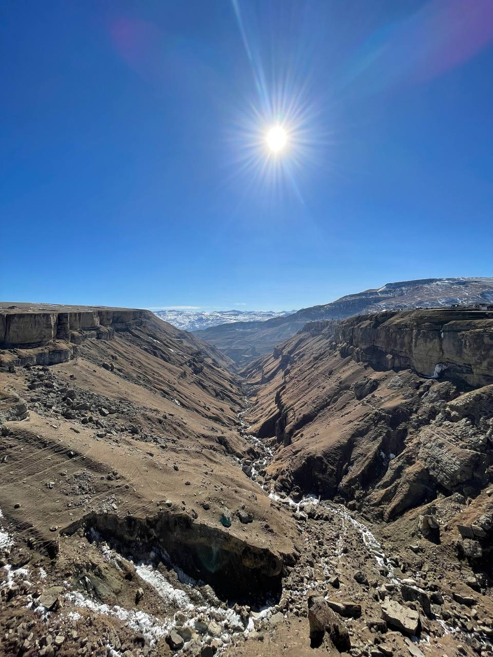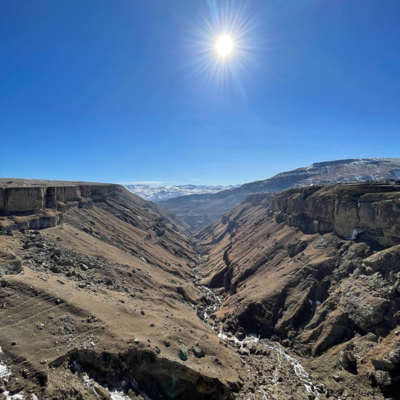 12:00 — Обед в одном из лучших кафе прямо над Сулакским каньоном. Сулакский каньон — самый глубокий каньон в Европе и один из глубочайших каньонов в мире. Располагается в долине реки Сулак. По глубине Сулакский каньон уступает лишь каньонам Котауаси и Колка в Перу и является самым глубоким каньоном в Европе. По красоте он вполне может спорить с Гранд каньоном в США. Сулакский каньон является самой популярной природной достопримечательностью Республики Дагестан.